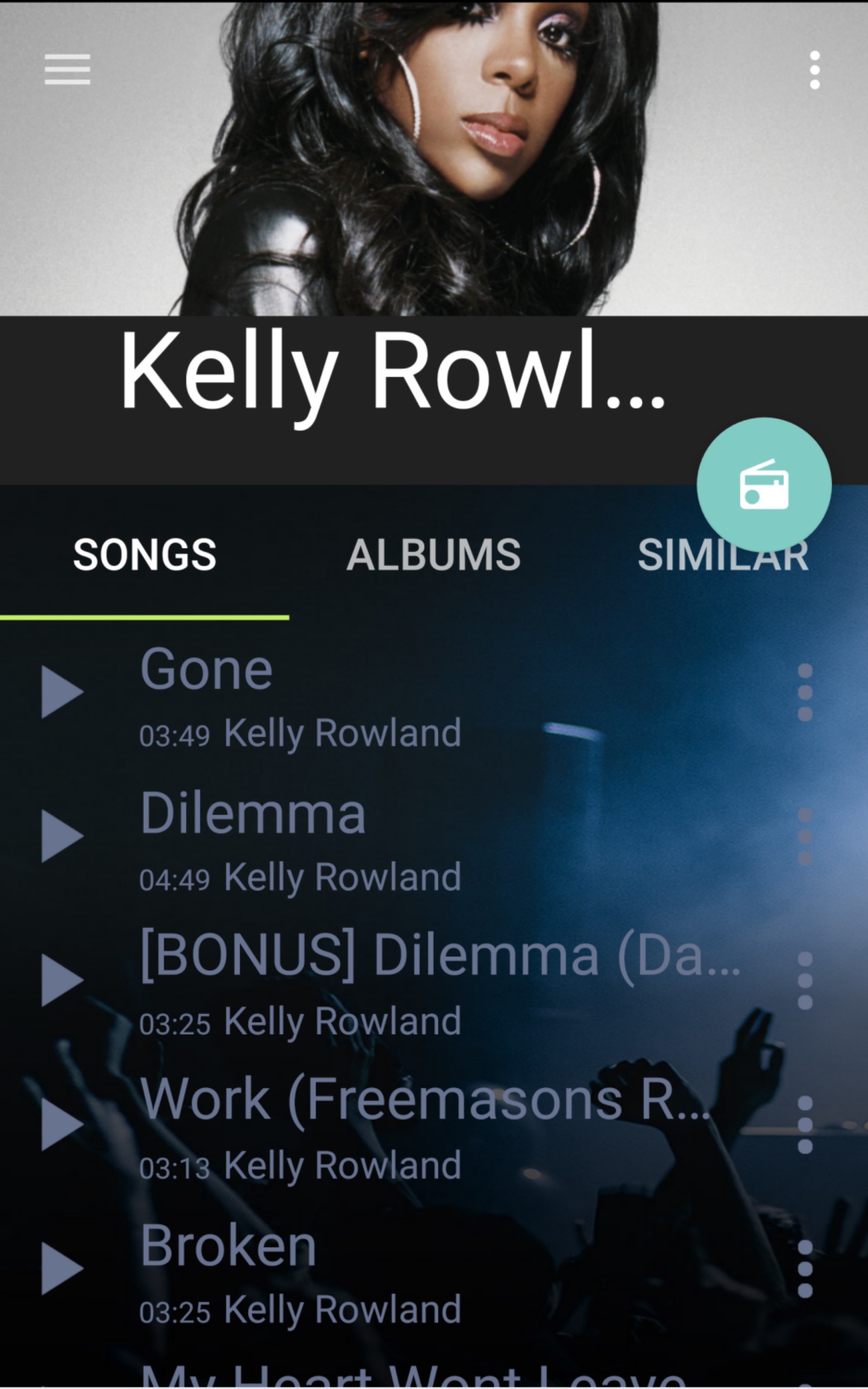 Una vez tenemos seleccionado el artista, la App nos recomienda algunos artistas similares (y funciona bien, no hace recomendaciones absurdas como otras Apps). No hemos echado en falta ningún artista y casi ningún álbum.