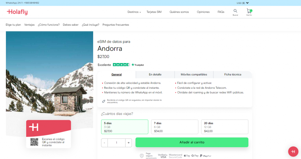 Las eSIM de Andorra representan una ventaja sobre las tarjetas tradicionales, sobre todo cuando se realizan viajes. Al escanear un simple código como los que ofrece HolaFly podrás contar con una nueva línea sin eliminar ninguna SIM del móvil. Además, puedes realizar tu compra desde la comodidad de tu hogar y recibirla en cualquier momento, incluso antes de viajar.