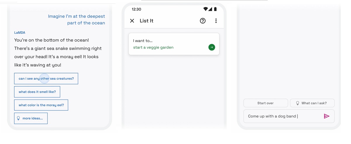 Por ahora, la aplicación solo cuenta con 3 demos diferentes. El primero de ellos es «Imagine It», el cual te permite mencionar un lugar y LaMDA creará opciones para explorar tu imaginación. Otro demo es «List It», los usuarios mencionarán un tema en específico y el chatbot lo desglosará en diferentes subgrupos.