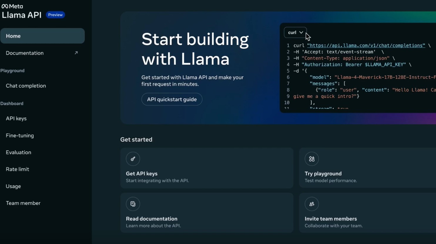 Uno de los anuncios más destacados fue el lanzamiento de Llama API, una plataforma pensada para facilitar la creación de aplicaciones con modelos Llama. Este servicio incluye una vista previa gratuita, claves de API de fácil acceso y herramientas interactivas que permiten explorar modelos como Llama 4 Scout y Maverick.