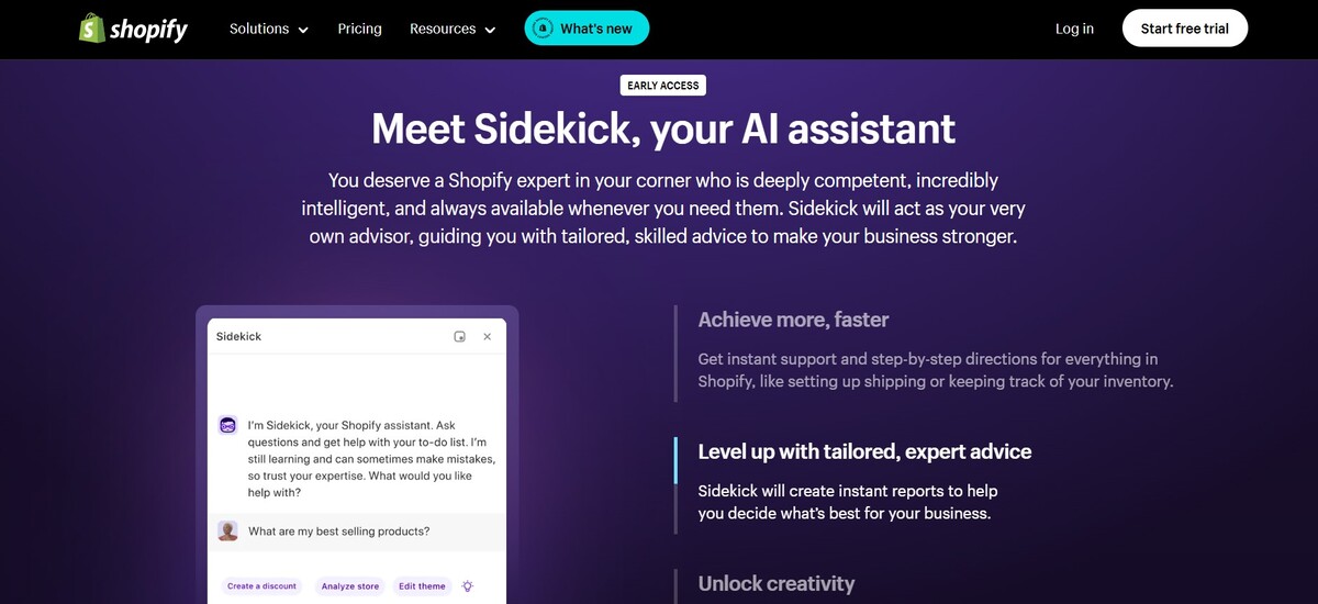 Presentado por primera vez el año pasado, Sidekick se destaca como un asistente integral para los comerciantes. Sus funcionalidades abarcan la creación automática de códigos de descuento, la generación de informes detallados sobre las tiendas y la propuesta de ideas para publicaciones en blogs.