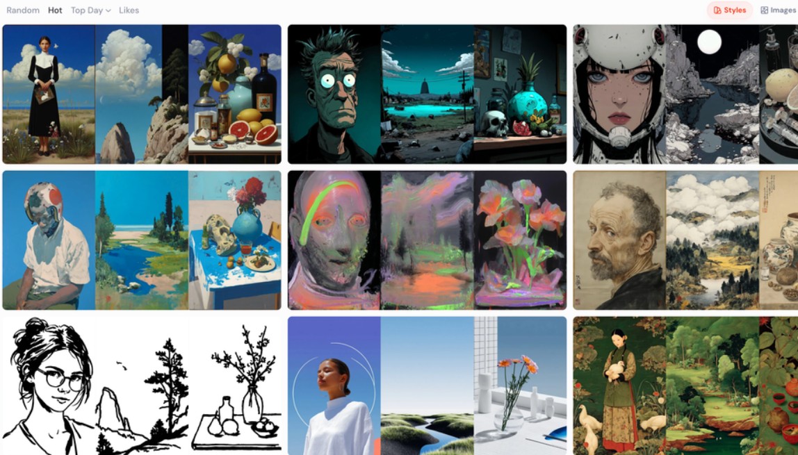 El Style Explorer se diseñó pensando en la comodidad de los creadores. Con solo marcar “like” es posible guardar estilos favoritos para usarlos más tarde. Pero lo más llamativo es la función “Try Style”, que permite aplicar el estilo elegido al prompt que tengas en la barra de inmediato.