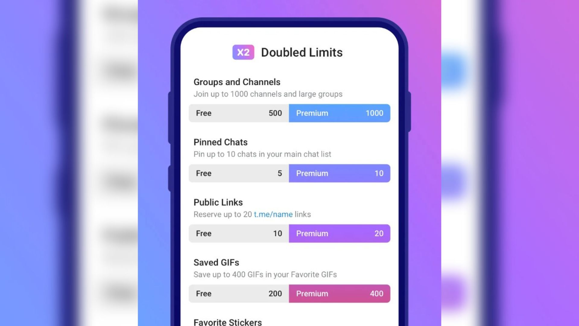 Por ejemplo, puedes unirte a 1.000 canales, crear 20 carpetas de chat con 200 chats cada una, anclar hasta 10 chats. Los usuarios premium también pueden tener biografías más largas con un enlace.