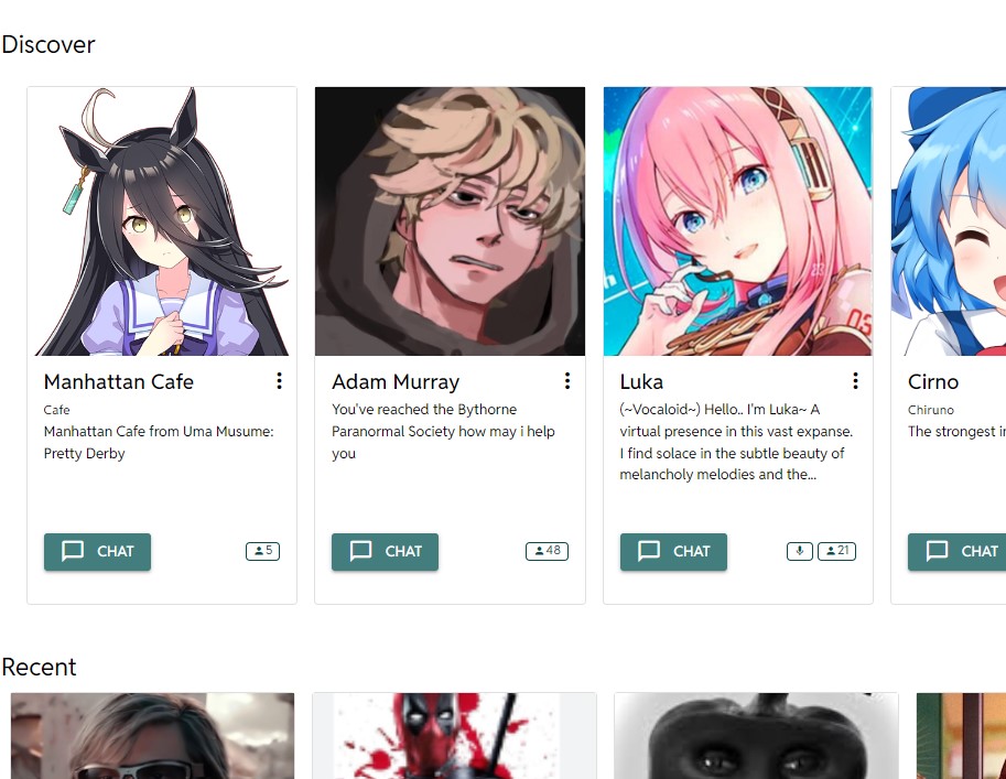 Crea una cuenta en ChatFAI y escoge o crea un personaje