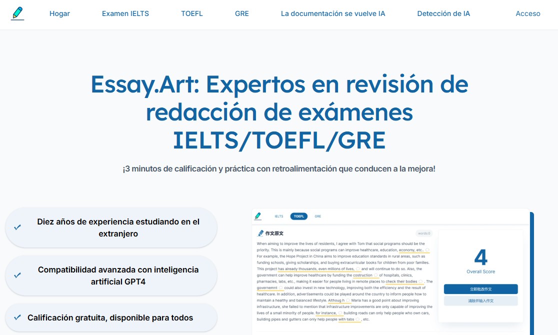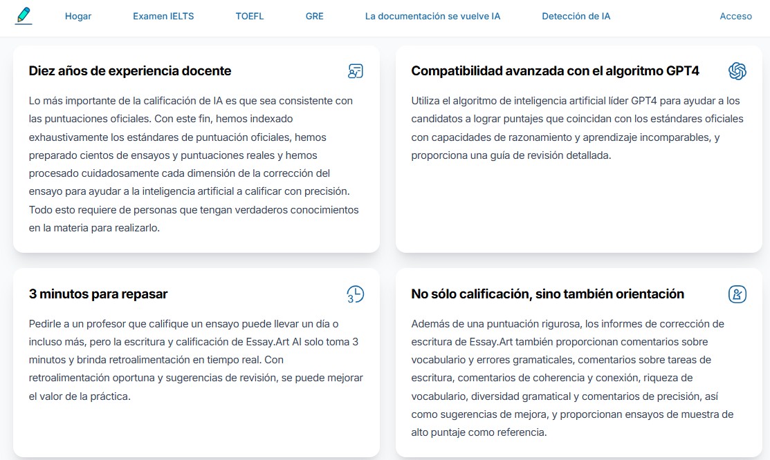 Essay Art tiene la capacidad de corregir ensayos en tiempo real. Por ejemplo, al escribir una tarea del IELTS, el estudiante puede enviarla a través de la plataforma y recibir correcciones detalladas sobre la gramática, la coherencia del texto y la claridad del mensaje.