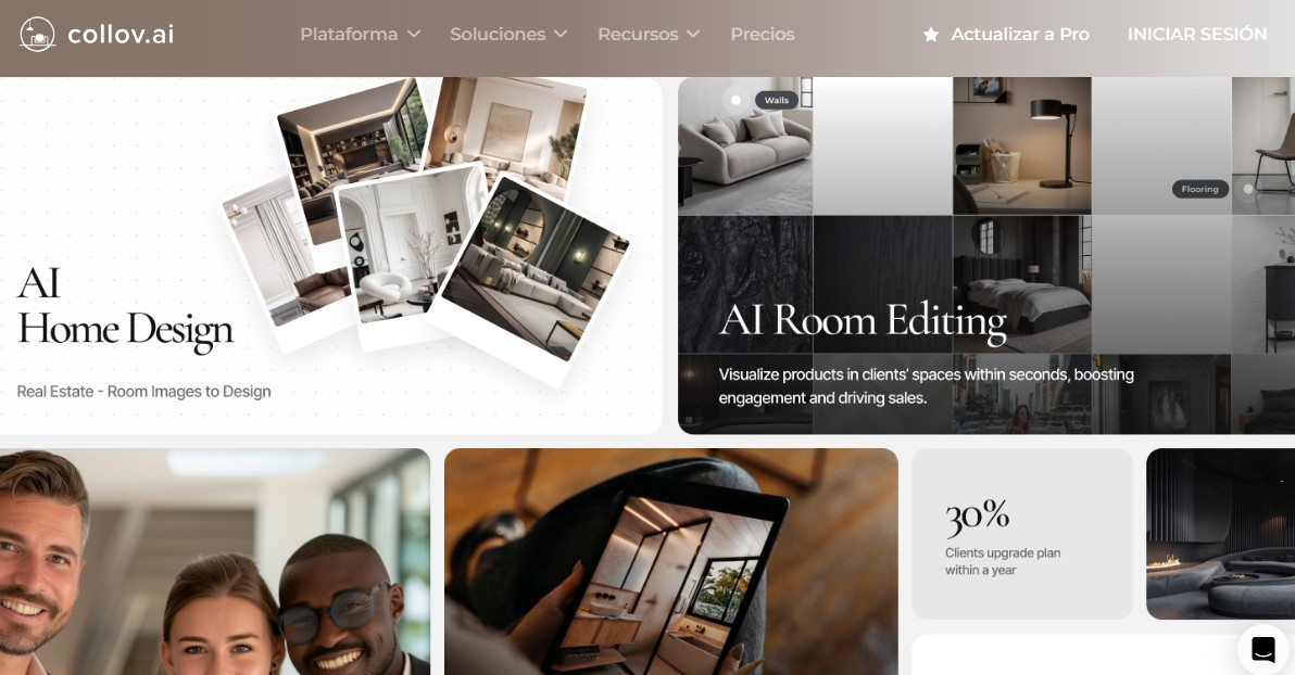 Collov ofrece múltiples funciones diseñadas para hacer del diseño de interiores una experiencia sencilla y efectiva. La plataforma cuenta con IA avanzada que permite generar espacios con un alto nivel de realismo.