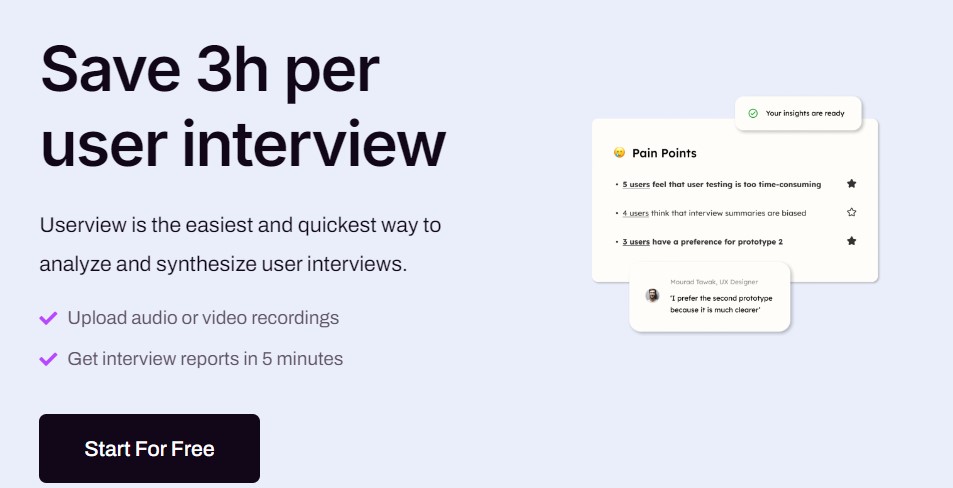 El uso de Userview ofrece una serie de ventajas que lo convierten en una herramienta muy atractiva para las empresas que desean optimizar su proceso de investigación de usuarios. Una de las principales es el ahorro de tiempo, ya que la automatización del análisis de entrevistas permite reducir considerablemente el tiempo dedicado a esta tarea.