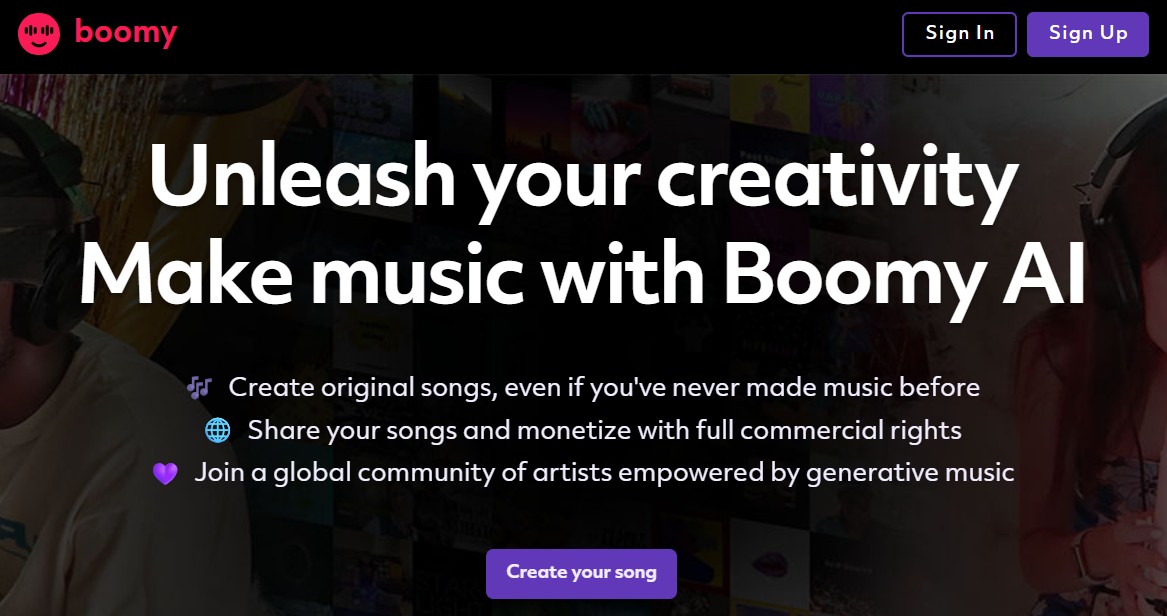 Lo primero es registrarse en la página oficial de Boomy. La plataforma ofrece tanto cuentas gratuitas como opciones premium, lo que permite elegir entre funcionalidades básicas o un acceso más completo a descargas y beneficios adicionales.