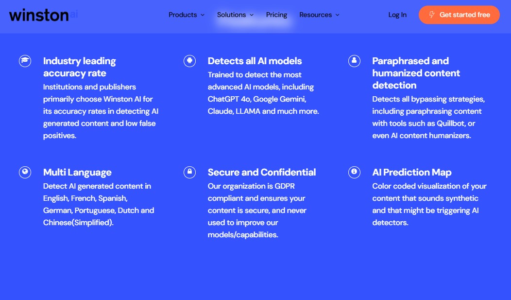 - Alta Precisión: Con una tasa de precisión del 99.98% en la detección de contenido generado por IA, Winston AI minimiza los falsos positivos y asegura resultados confiables.