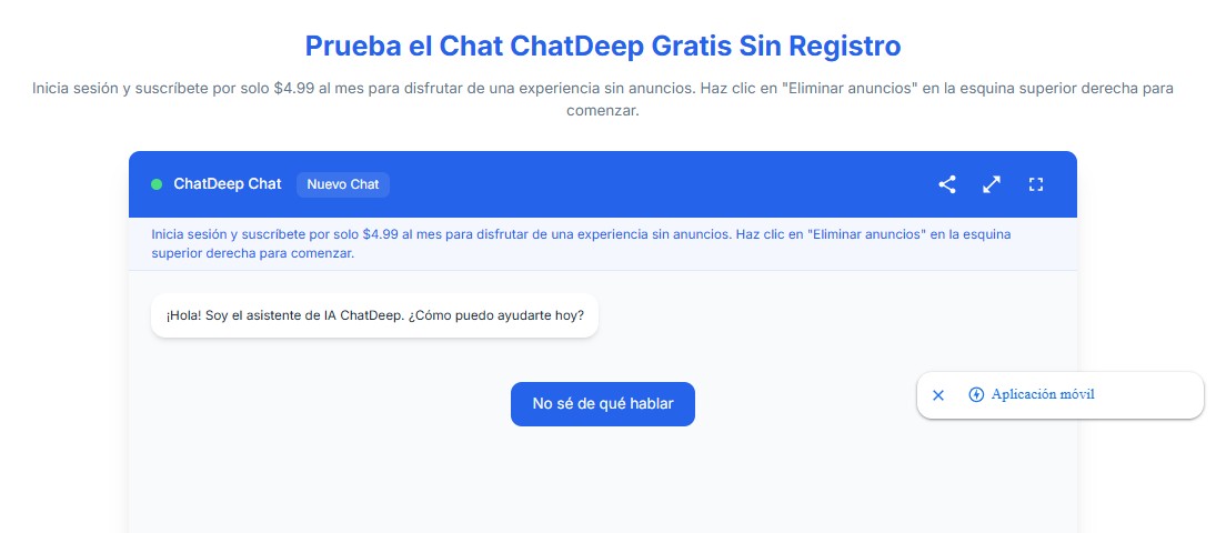 Para comenzar a generar fragmentos de código con IA. Primero, visita el sitio web oficial de ChatDeep o descarga la aplicación móvil. No necesitas registrarte ni crear una cuenta, lo que permite comenzar a utilizarlo de inmediato.