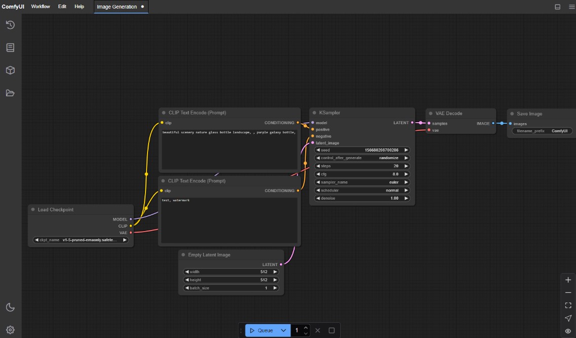Una de sus mayores fortalezas es su sistema de flujo de trabajo basado en gráficos, que permite organizar los distintos pasos de la generación de imágenes como nodos interconectados.