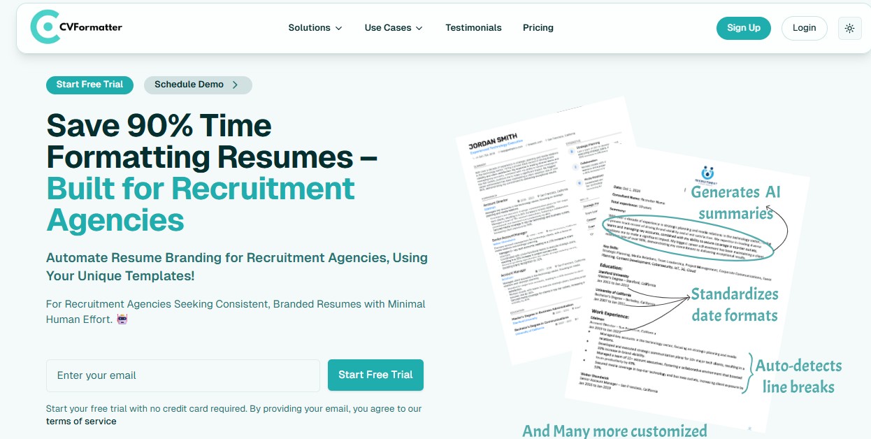 Uno de los mayores atractivos de CVFormatter es su capacidad para convertir currículums en documentos adaptados para su revisión por sistemas automatizados. Al cargar un archivo, el sistema lo reformatea automáticamente con IA para mejorar su legibilidad y estructura.