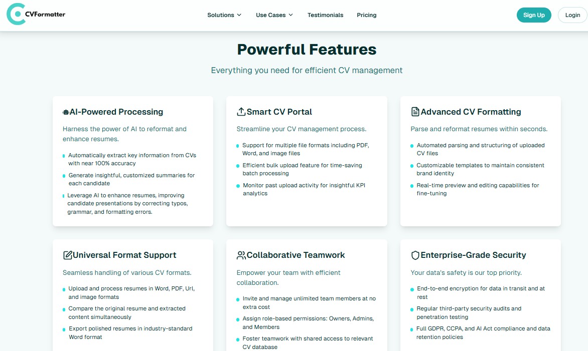 Para empresas y agencias de reclutamiento, CVFormatter representa una herramienta de gran valor operativo. La función de procesamiento masivo permite cargar múltiples currículums a la vez y aplicar los mismos estándares de formato a todos ellos.