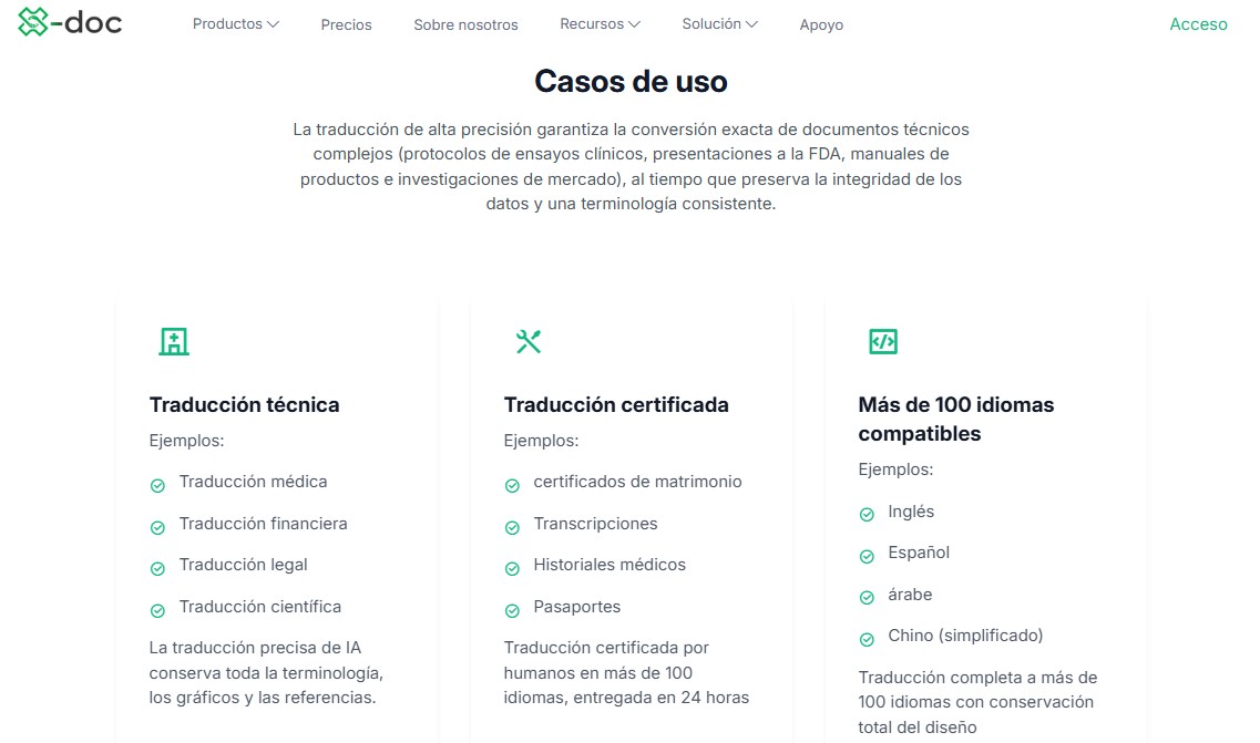 Asimismo, X-doc permite integrar glosarios personalizados y memorias de traducción, asegurando que la terminología especializada, como términos médicos o legales, se mantenga coherente en todo el proceso.