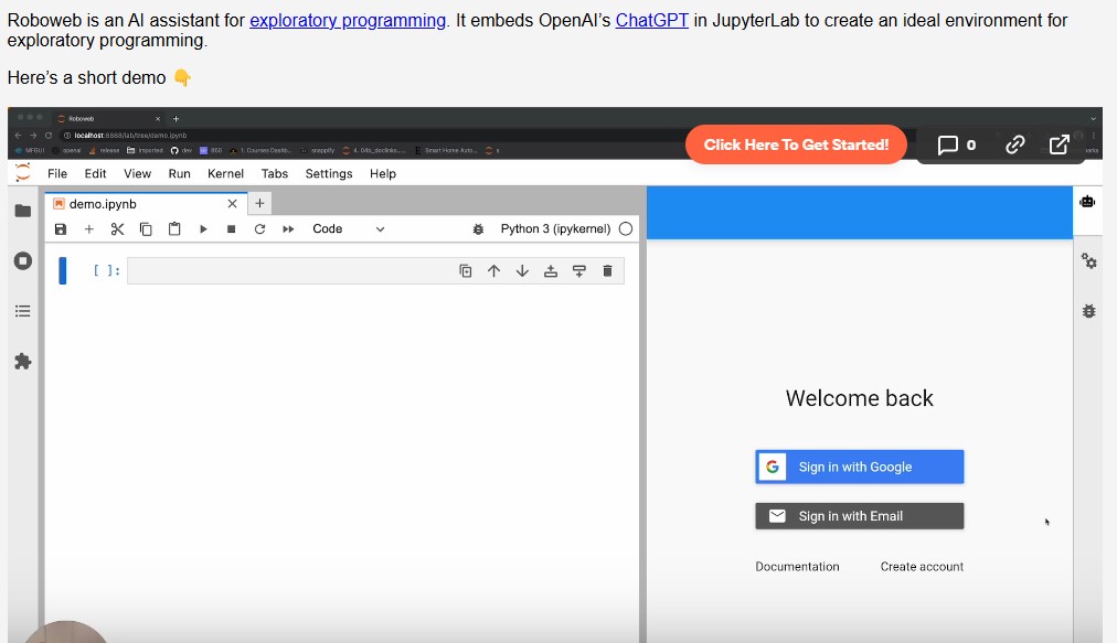Roboweb simplifica el proceso de programación exploratoria a través de sus potentes herramientas de IA, lo que permite un flujo de trabajo más efectivo y accesible. Los desarrolladores pueden aprender y mejorar sus habilidades de programación, ya que el asistente ofrece retroalimentación inmediata y propone soluciones a problemas de código al instante.