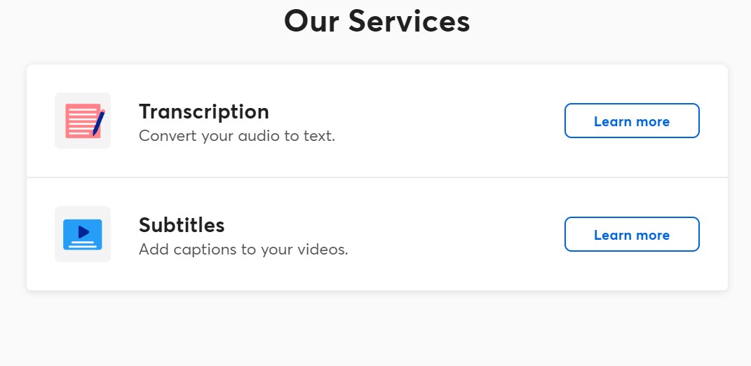 Una vez cargados los archivos, los usuarios pueden elegir entre servicios de transcripción y subtitulación automáticos o realizados por humanos, según la precisión y calidad deseadas para el proyecto.