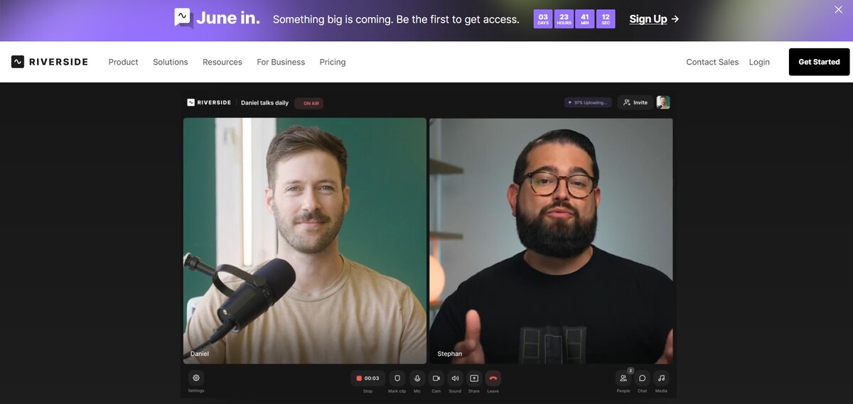 Primero, crea una cuenta en Riverside y configura tu estudio de grabación. Este proceso es intuitivo y te permitirá empezar a usar la plataforma rápidamente. Envía invitaciones a tus invitados para que se unan a la sesión de grabación. Riverside facilita el proceso de conexión, permitiendo a los invitados unirse con facilidad.