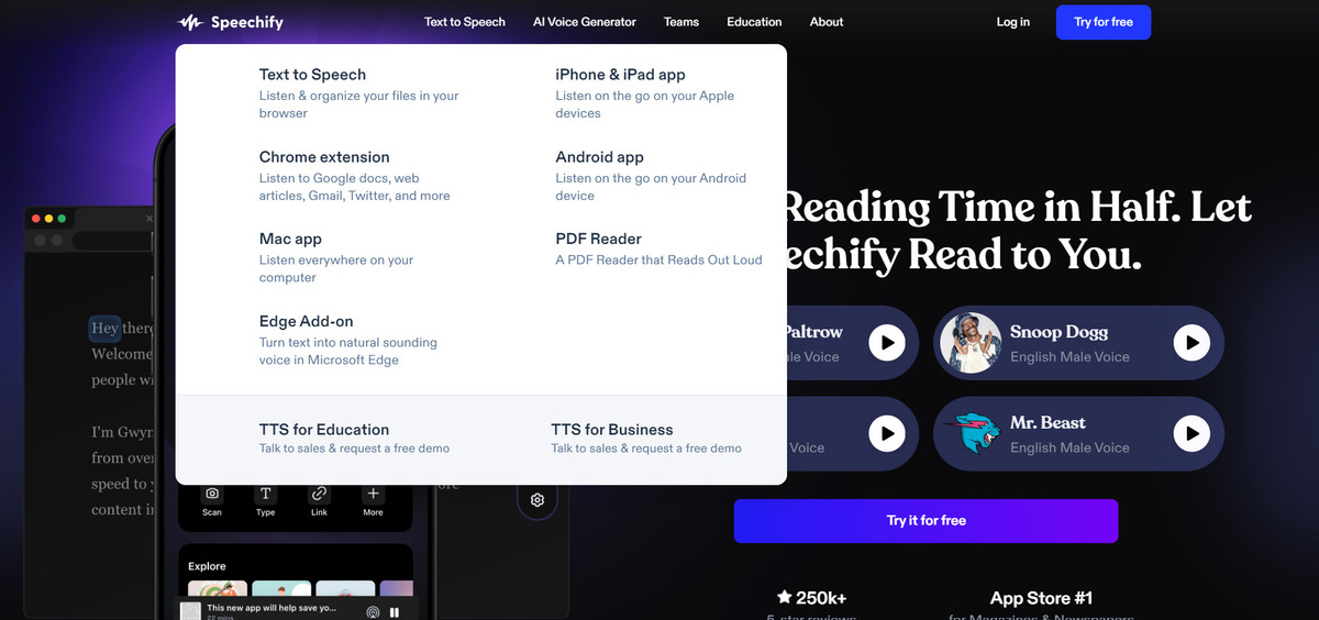 Para comenzar a usar Speechify, primero necesitas descargar la aplicación o la extensión del navegador en tu dispositivo preferido. Está disponible para iOS, Android, Mac y como extensión para Chrome y Edge.