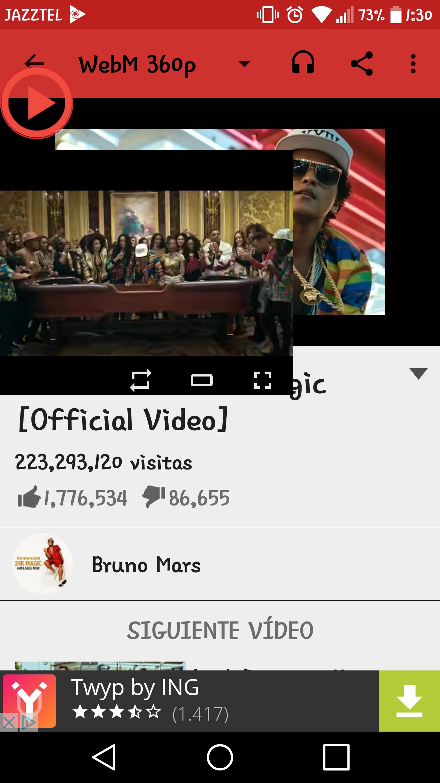 - Reproducirlo desde la app dando al play: el video se abre en pantalla completa y si pulsamos el botón home o bloqueamos el dispositivo, el audio se sigue reproduciendo. No controles ni en la barra de notificaciones ni en la pantalla de bloqueo. Para cambiar de vídeo hay que regresar a la app.